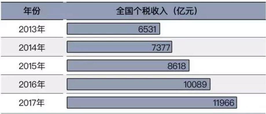 北上广深工薪族成了缴税主力 财政部的数据显示,我国个税缴纳额逐年增加。2017年个人所得税11966亿元,同比增18.6%! 看一下我国个税的增长幅度: