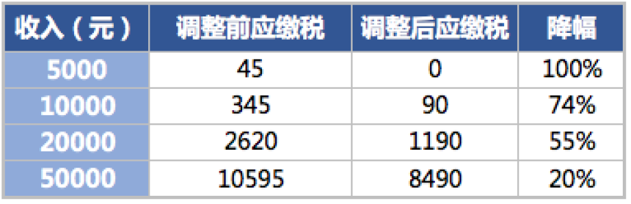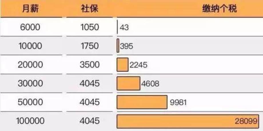 个税大改,工薪族*受益!中国个税起征点过低,一直是社会讨论的焦点,个税给工薪阶层造成了巨大压力。 对于工薪族来说,大部分人薪水在6000-50000元之间,工资越高,个税越多: