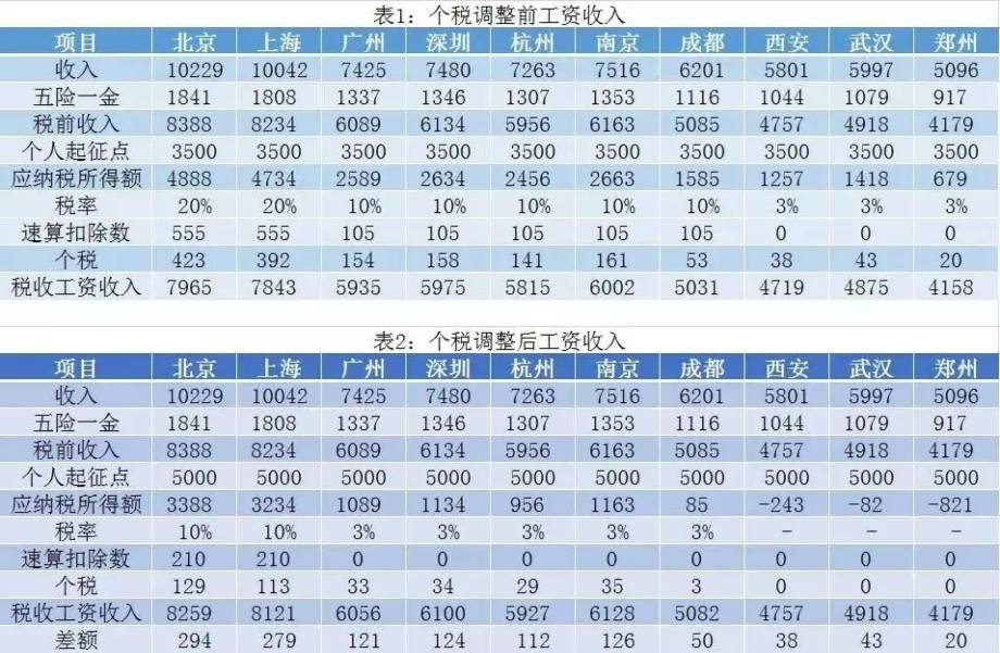 工资个税的计算公式:应纳税额=(工资薪金所得-“五险一金”-扣除数)×适用税率-速算扣除数。 在税率方面,我国实行七级超额累进税率,不同的应纳税所得额区间对应不同的税率,税率*低档为3%,*高档为45%。税率具体如下表所示: 到底是怎样能让我们省钱的?我们来粗略算一笔账。 如果月薪收入10000元,原来适用3%、10%、20%三档税率,需要缴纳个税345元; 改革后由于20%税率级距扩大,20%税率降为10%,纳税约为90元,减税255元,降幅达到74%。 也就是每月收入多增加255元,每月吃饭你可以多加很多鸡腿了。 看看不同城市的你,能“赚”多少钱?